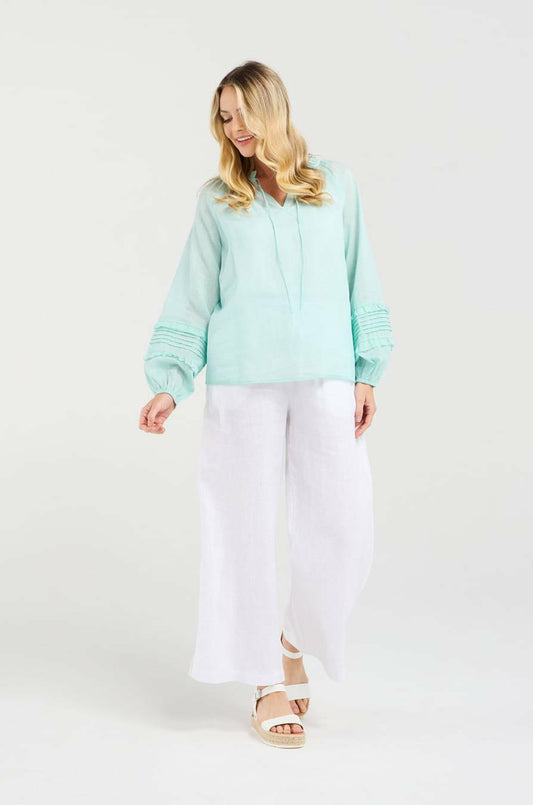 Blackstone Colette Gathered Sleeve Top - Mint Green Geo
