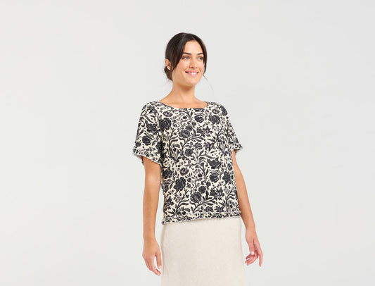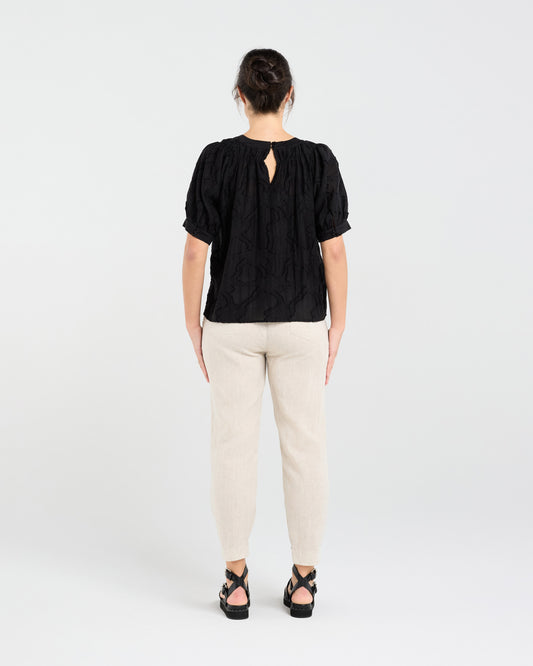 Blackstone Lisette Gathered Yoke Top - Black Jacquard