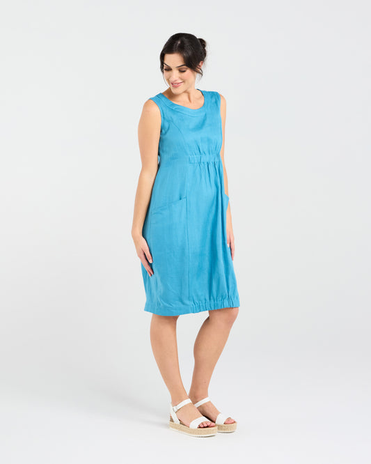 Blackstone Marcella Two Pocket Elastic Waist Dress - Mosaic Blue