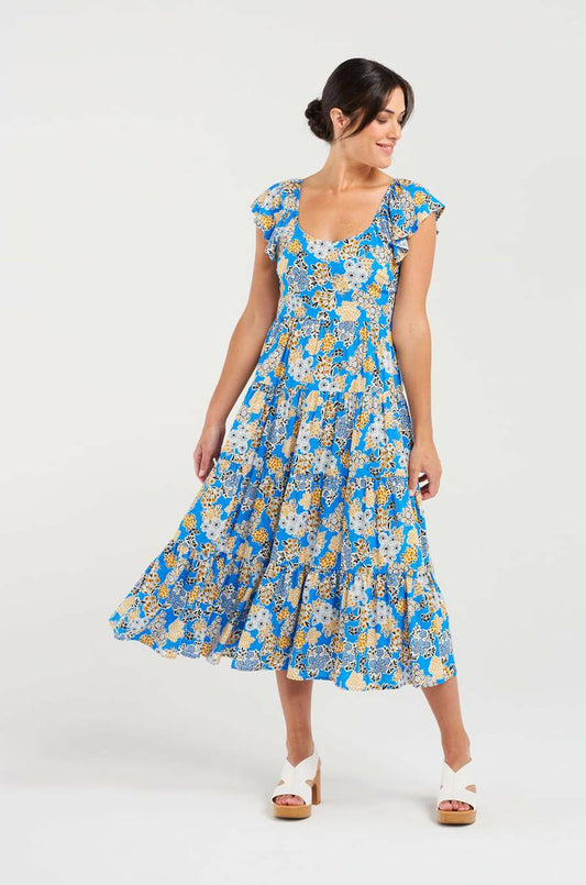 Blackstone Brielle Flutter Sleeve Dress - Blue Boquet