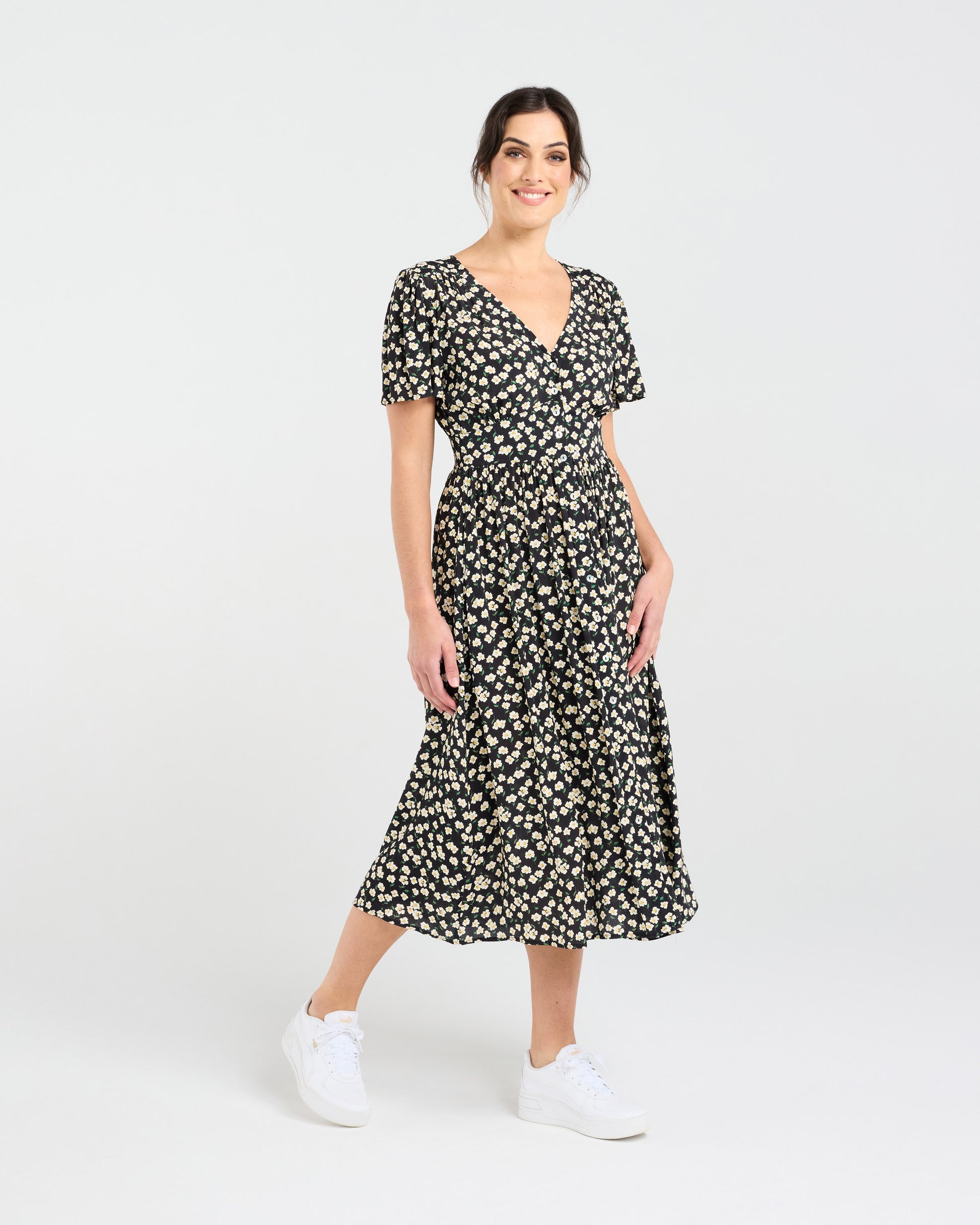 Blackstone Gigi V-Neck Button Front Dress - Daisy Chain Print